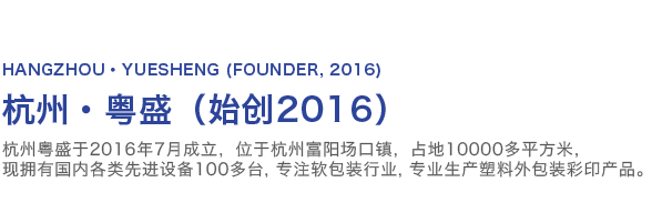 廣州市粵盛工貿(mào)有限公司于1992年成立,經(jīng)多年發(fā)展后從1997年成功轉(zhuǎn)型,專注于生產(chǎn)、銷售各行業(yè)塑料軟包裝產(chǎn)品。